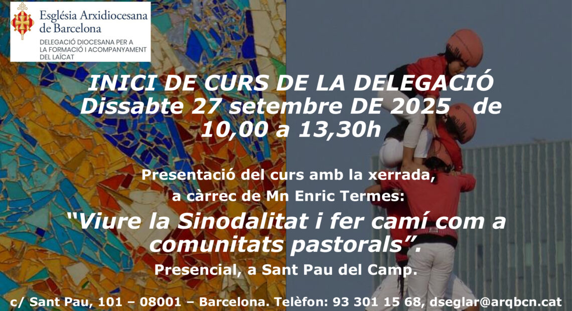La Delegació de Formació i Acompanyament del Laïcat de l’Arxidiòcesi de Barcelona va inaugurar el curs 2025-2026 amb una trobada presidida pel bisbe auxiliar de Barcelona, Mons. David Abadías, i amb la participació de la delegada, Anna Almuni, i de Mn. Enric Termes, responsable de la implementació del Sínode sobre la sinodalitat a l’arxidiòcesi.