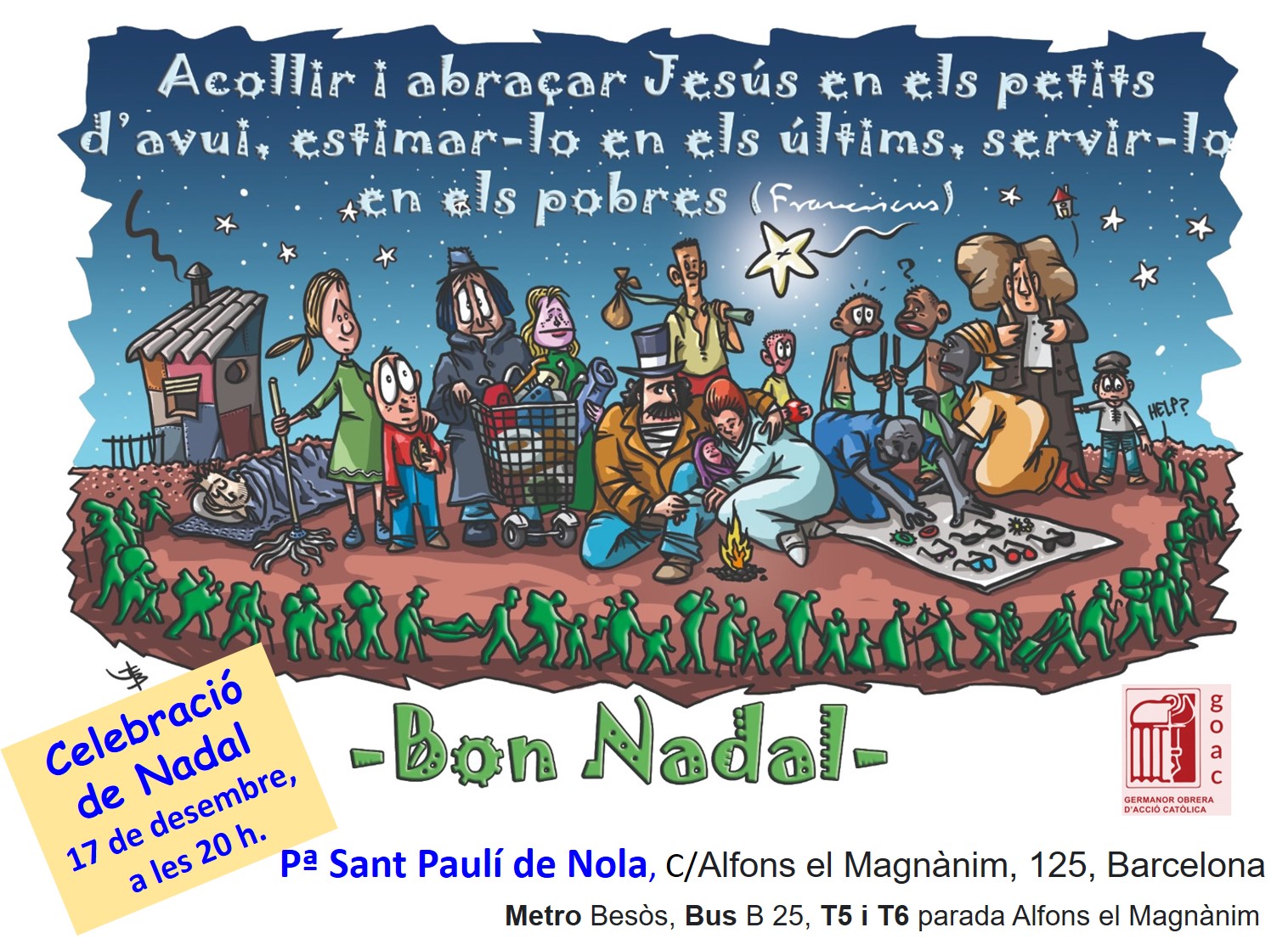 Com cada any, la GOAC de Barcelona-Sant Feliu ho celebrem i us convidem a la nostra Celebració del Nadal. Farem una eucaristia i en acabada compartirem el sopar i postres nadalesques.