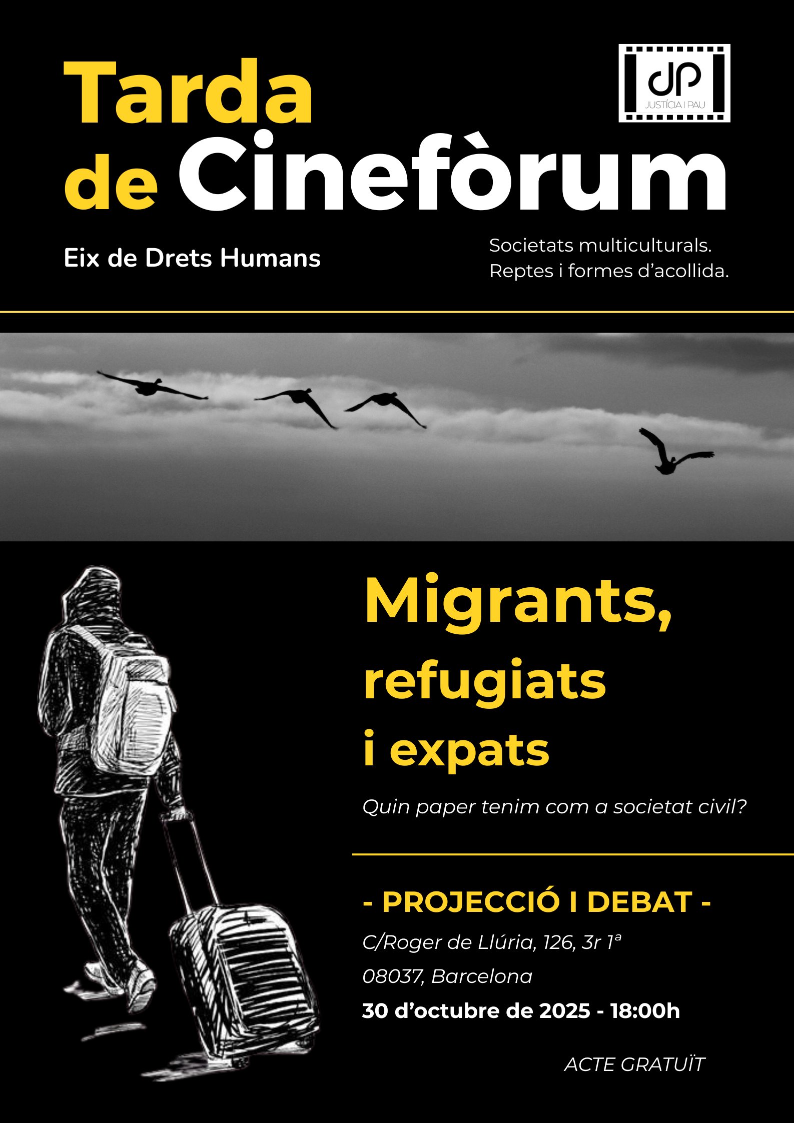 Guardeu-vos tota la informació: dijous 30 d’octubre, a les 18 h, a la seu de Justícia i Pau Barcelona (C/Roger de Llúria, 126, 3r 1ª). Cal inscripció prèvia a: https://forms.cloud.microsoft/e/ZZq9y2CQqj