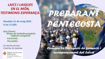 El Monestir de Sant Pau del Camp ha acollit aquesta darrera quinzena de maig una trobada amb el laïcat per a preparar la Pentecosta. Més cent cinquanta persones van assistir-hi convocats per la Delegació per a la Formació i Acompanyament del Laïcat, sota el lema “Anunciem el que som i el que vivim”. Amb aquesta consigna s’introduïa així la crida a viure el Primer Anunci, seguint el primer dels pilars del Congreso de Laicos.